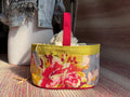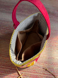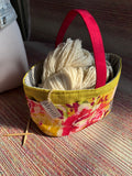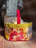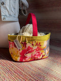 The Atenti Blossom Grey Caddy has a robust texture cotton linen blend printed with a bold floral watercolor design. This stand-alone, carry around organizer has black trim and ultra suede handles. It has four outside and four inside pockets with an ample center well perfect to store and keep handy all your tools and notions.