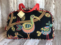 This fun brocade in rich colors is framed in an animal pattern gusset. Perfect for a weekend away, a knitter's project bag, an airline carry-on or a diaper bag.