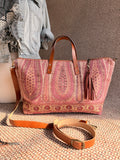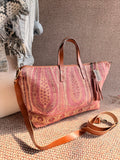 Designed for everyday function, this spacious bag includes a 28” zipper closure, and protective feet. The interior is fully lined with tan water-repellent taffeta and includes a zippered pocket, divided open pouch, and a slot for your cell phone.