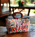 Our new Divina design in a fun and colorful printed velvet featuring bold whimsical animals. Seamless design of classic vintage with modern flare create a perfect statement piece that can be worn year round. This bag features wooden handles, a magnetic closure,...