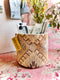 Elevate your home organization with this beautiful basket. The Tortilla Tiny Tucker has a woven fabric boasts a captivating geometric pattern in a palette of earthy tones. It's both functional and fashionable. Its sturdy construction ensures it stands tall, making it perfect for storing your favorite items. Upgrade your home organization with this one-of-a-kind basket! Order yours today and experience the perfect blend of style and function.