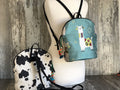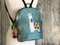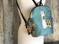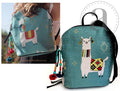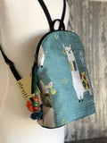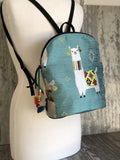 Cute Backpack for all ages! Fun and trendy llamas woven into a jacquard. This small fashionable backpack/shoulder bag has a 16” zipper allows the two straps to fuse into a thicker strap for comfort when using as a shoulder bag. Zipper closure, fully lined with our water resistant taffeta. Inside are a zippered pocket and an open divided pocket with a cell phone slot. 12” w x 12” tall x 5” deep.